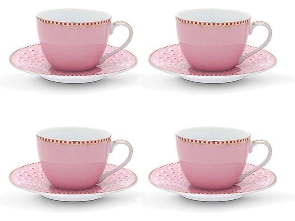 Pip Studio Floral Espresso šálek s podšálkem růžový 120ml